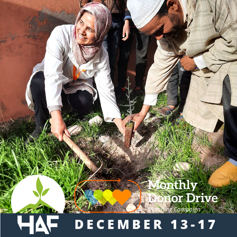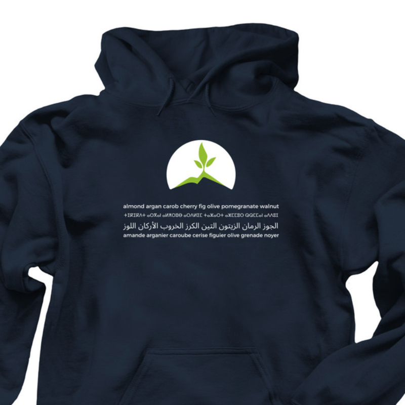 | Help HAF plant 1 million organic, livelihood-enhancing fruit trees with Moroccan families with a purchase of multilingual Transformational Trees HAF apparel.