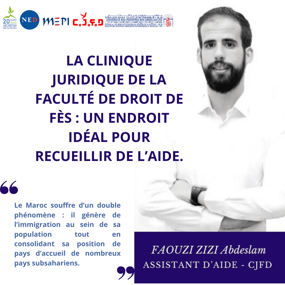 À cet égard, la Clinique Juridique de la Faculté de droit de Fès a ouvert ses portes en 2019 pour fournir des conseils juridiques gratuits à la Faculté de droit, d’économie et de sciences sociales de l’Université Sidi Mohamed Ben Abdellah de Fès. La CJFD opère en partenariat avec la Fondation du Haut Atlas. Elle est financée par le National Endowment for Democracy et l’Initiative de partenariat États-Unis-Moyen-Orient (MEPI).