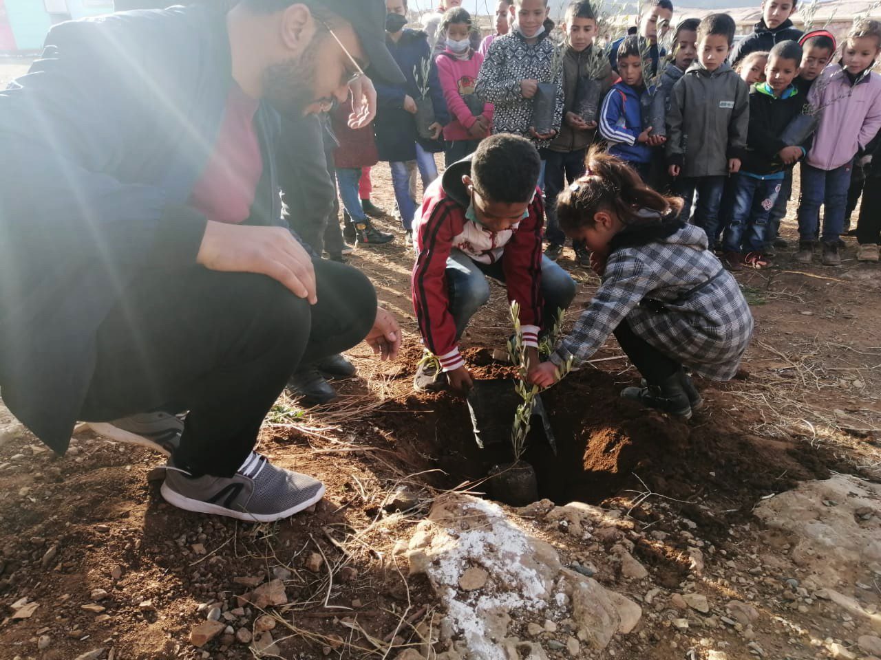 17 January 2022 — In the early morning hours, the entire team at High Atlas Foundation began to orchestrate an event that would last all day and take place from Tangier to Boujdour, from Oujda to Ouarzazate. Trees were planted at dozens of sites all over Morocco—in the ancient medinas, at primary schools, high schools, and universities, and on windswept mountainsides and in quiet valleys—everywhere, a greening of the nation.