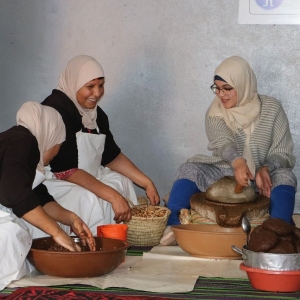 The women who work inside of the Cooperative respect certain steps in order to produce Argan oils. The first step lies in harvesting the Argan nuts and this step itself can be done through two ways: the first and common way is to collect the Argan nuts that fall from the trees, and the second method is to collect the nuts which goats spit out after eating the fleshy layer of the fruit. This step is done either in July or early August.